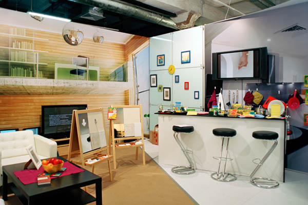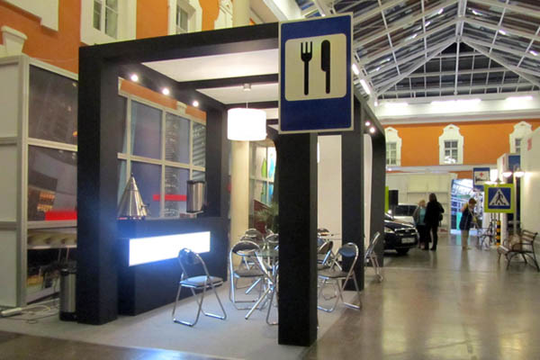 Также на экспозиционном пространстве были размещены зона кафе, переговорные комнаты, зоны активной демонстрации. Были оборудованы и специфические помещения, например звуковая комната для оценки эффективности свойств противошумных наушников 3М и темный тоннель для пленок, управляющих светом.