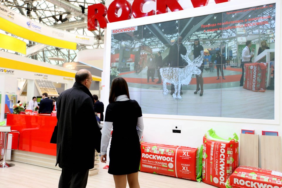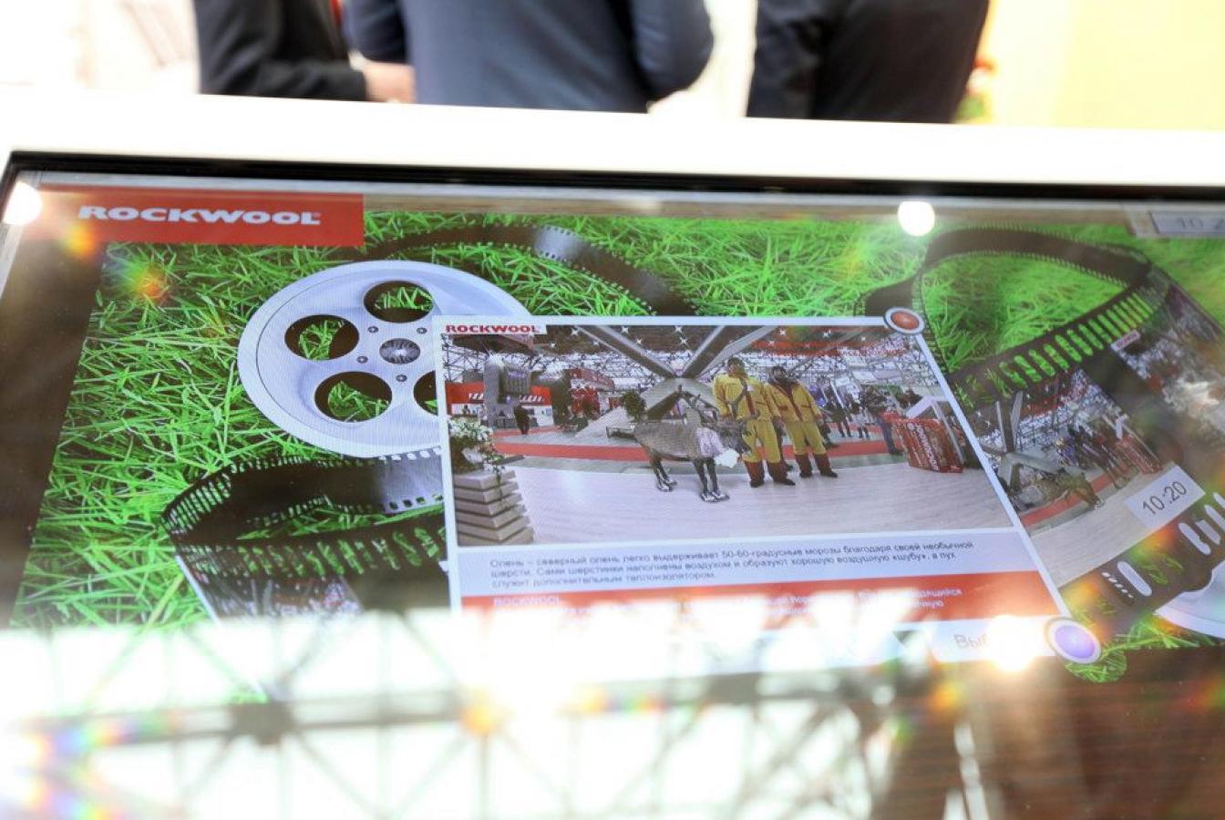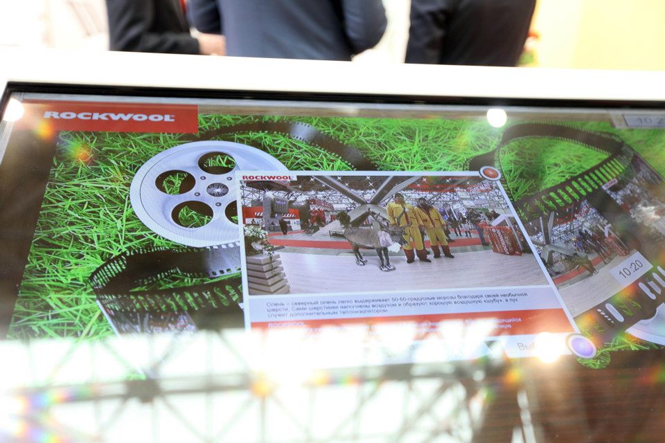 На стенде ROCKWOOL также мы воплотили интересный интерактивный аттракцион - Дополненная Реальность. Посетители стенда могли сфотографироваться с виртуальными животными северных широт и отправить себе фото на почту или распечатать его.