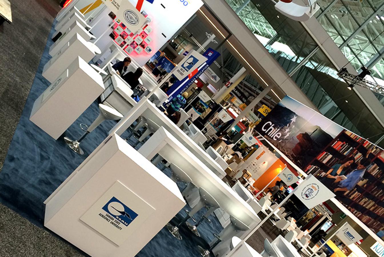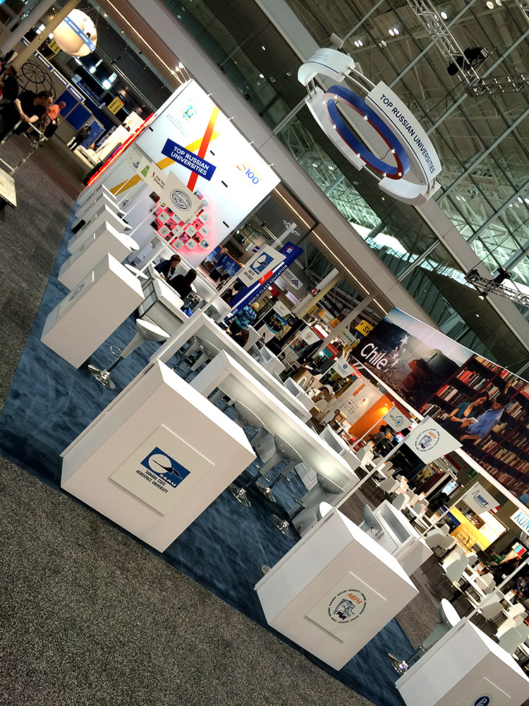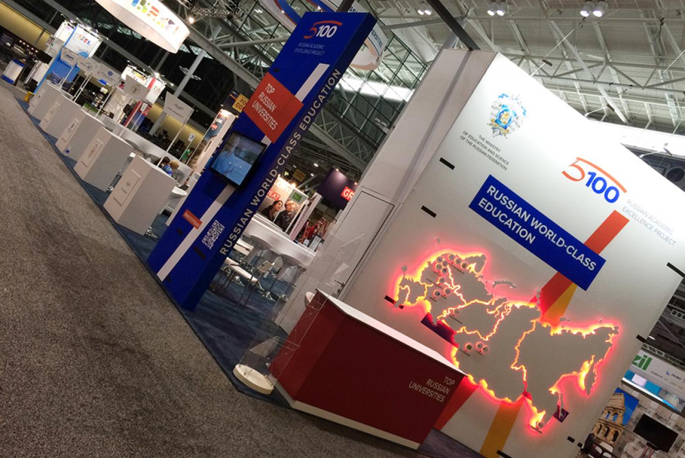 Стенд стал одним из самых ярких на выставке. Среди деталей проекта выделяются масштабная объёмная световая карта с объемными логотипами университетов-участников, объемный логотип во всю высоту торцевой стены, объемный световой коллаж на центральной стене, продуманные рабочие зоны для участников проекта.
